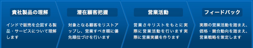 一営業パーソンとして、インドにおいてクライアントの製品・サービスを販売し、マーケットにおける可能性を明らかにします